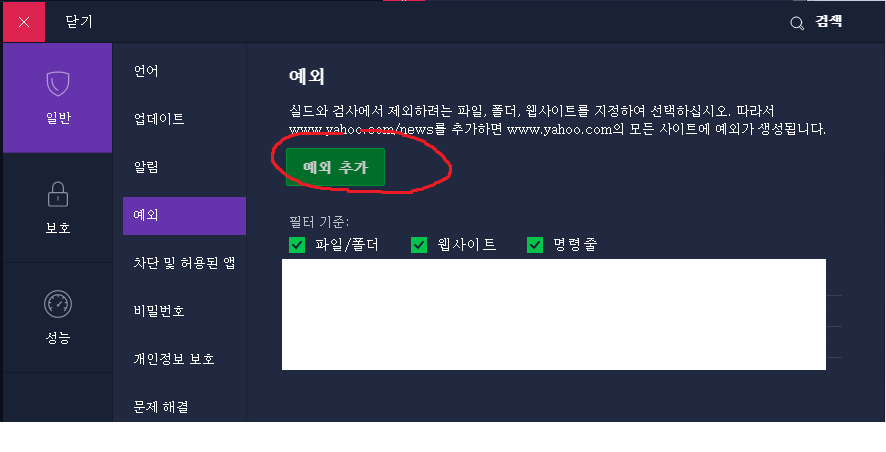 img1.daumcdn.net 을 입력해주고 예외추가 버튼을 눌러줍니다.